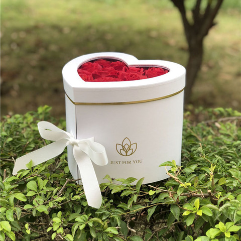 Unai กล่องของขวัญดอกกุหลาบหรูหราทรงหัวใจสีแดงขาวสองชั้นสำหรับวันวาเลนไทน์ของขวัญส่งเสริมธุรกิจ